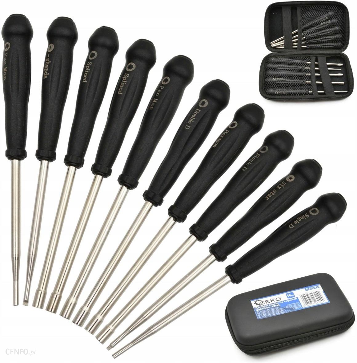GEKO – KOMPLET KLUCZY DO REGULACJI GAŹNIKÓW 10 SZT.Kod produktu: G30070Komplet kluczy renomowanej marki narzędziowej GEKO przeznaczonych do regulacji gaźnikówW skład zestawu wchodzi 10 różnego rodzaju kluczy, co czyni ten zestaw uniwersalnym i umożliwia regulację różnego rodzaju gaźników.Klucze umieszczone w zamykanym etui – pozwala to utrzymać porządek, ogranicza ryzyko zgubienia oraz ułatwia transport.Charakterystyka produktuwykonane z wysokiej jakości stali narzędziowejposiadają ergonomiczna rękojeśćw komplecie 10 rodzai kluczycałość zestawu umieszczona w poręcznym zasuwanym etuiZawartość zestawuSplined w dwóch rozmiarachPac Man w dwóch rozmiarachPojedyncze D w dwóch rozmiarachpodwójne DShaped „-” (płaski)Six star – gwiazda sześcioramiennaHexagonSpecyfkacja technicznaProducent: GEKOMateriał: stal narzędziowa, tworzywo sztucznegoDługość całkowita: 157 mm