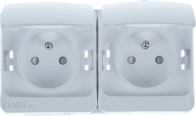 Gniazdo wtyczkowe jednofazowe podwójne (2x2P+PE) z uziemieniem. Wymiar: 64 x 90 x 48, Stopień ochrony IP 44, Napięcie znamionowe: 250V, Prąd znamionowy: 16A. Uwaga! Produkt kompletny.