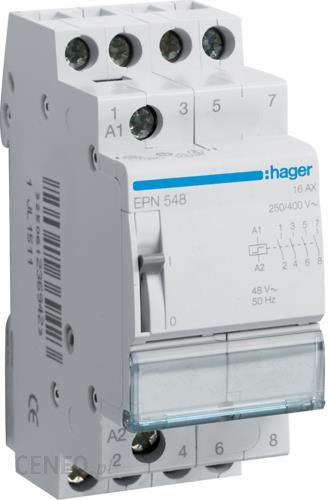Wyłącznik imp. 48V,4Z/16A Firma Hager to lider systemów instalacji elektrotechnicznych dla domów, biur i powierzchni przemysłowych. W ofercie posiadamy nie tylko bogatą gamę łączników i gniazd, ale również rozwiązania z zakresu rozdziału energii. Są to produkty wysokiej jakości, które charakteryzuje ponadczasowy design, różnorodność wzorów, kolorów, kształtów oraz wysokie walory estetyczne i ultranowoczesne wzornictwo. Dane techniczneIlość styków:4Prąd znamionowy:16Napięcie sterowania AC:48Napięcie sterowania DC:24Ilość modułów:2Znamionowe napięcie robocze Ue (AC):400Znamionowe napięcie izolacji Ui:400Maksymalna moc pobierana:55 VACzęstotliwość:50/60 HzCałkowite straty mocy dla prądu znamionowego:4,8 WWytrzymałość mechaniczna (ilość cykli):500000Temperatura pracy:-5 to 40 °CTemperatura magazynowania:-40 to 80 °CWysokość zainstalowanego produktu:83 mmSzerokość zainstalowanego produktu:35 mmGłębokość zainstalowanego produktu:63 mmModułowe rozłączniki izolacyjne i przełączniki zasilania Hager to nowe aparaty o prądach znamionowych od 16 do 125 A, umożliwiające łatwe i bezpieczne wykonywanie czynności łączeniowych w rozdzielnicach niskiego napięcia. Posiadają szereg udogodnień, takich jak energooszczędna dioda sygnalizacyjna LED czy też możliwość dobudowy styku pomocnicznego. Prosta obsługa i dokładność działania to cechy cyfrowych zegarów sterujących. Programowanie zegarów może być przygotowane poprzez dedykowane oprogramowanie i przenoszone do urządzenia za pomocą kluczy programujących. Nowoczesne, energoszczędne i jeszcze łatwiejsze w montażu – to nowe, pełne serie styczników i przekaźników instalacyjnych Hager, których parametry techniczne zaspokajają potrzeby współczesnych instalacji elektrotechnicznych.• do sterowania obwodami maksymalnie do 16 A• możliwość centralnego włączania i wyłączania• możliwość podłączenia styków pomocniczych• wskaźnik stanu włączenia i możliwość sterowania ręcznego• po zaniku napięcia powrót styków do pozycji wyjściowej (bez pamięci stanu).Zaprezentowane zdjęcie ma charakter poglądowy. Wygląd produktu może nieznacznie różnić się od zdjęcia….