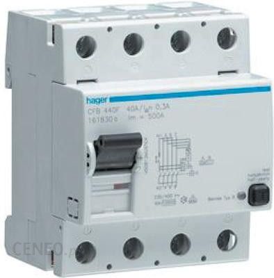 HAGER Wyłącznik różnicowoprądowy do obwodów zasilających falowniki – typ B 4 – biegunowy 40A (CFB440D)
