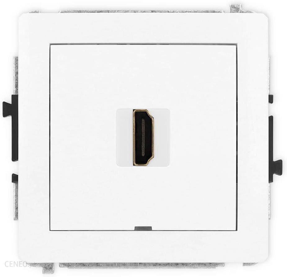 Gniazdo HDMI 2.0 pojedyncze w kolorze białym z serii DECO, marki Karlik.Gniazdo pojedyncze HDMI 2.0. Do kompletu wymagana ramka. Można stosować do systemów ramkowych wielokrotnych.Gniazdo HDMI stanowi estetyczne zakończenie przewodu HDMI poprowadzonego w ścianie, który musi być zakończony wtyczką HDMI.Gniazda HDMI służą do przesyłania cyfrowego, nieskompresowanego sygnału audio i video. Umożliwiają łączenie oddalonych od siebie sprzętów audio-video oraz komputerowych..Gniazdo w standardzie 2.0 pozwala na transmisję obrazu w rozdzielczości 4K/60Hz.