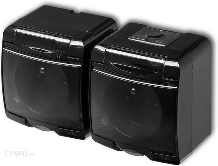 Karlik Gniazdo Podwójne Z Uziemieniem Natynkowe Ip54 Czarny Klapka Dymna Junior 12GHE2D