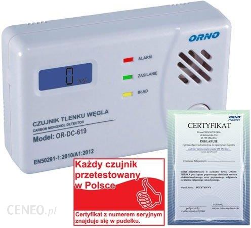 CharakterystykaNowoczesne urządzenie alarmowe zaprojektowane do ciągłego monitoringu stężenia tlenku węgla (czadu) z podświetlanym wyświetlaczem LCD. Wbudowany wysokiej jakości czujnik elektrochemiczny „ECO-CELL”.podświetlany wyświetlacz LCDprzycisk TESTzgodność z normą EN 50291-1:2010/A1:2012 dla domowych detektorów tlenku węglacertyfikat TUV Rheinland powiadomienie optyczne i dźwiękowegłośność do 85dBsygnalizacja za pomocą diodsygnalizacja słabych bateriisygnalizacja końca okresu działania detektorapomiar stężenia w zakresie od 30 ppm do 999 ppmfunkcja pamięci (zapamiętuje ostatnie stężenie tlenku węgla, które wywołało alarm)średni czas żywotności czujnika wewnętrznego ok. 7 latkoniec żywotności sygnalizowany sygnałem dźwiękowym oraz optycznym (wyświetlacz, dioda LED)niski koszt eksploatacjiprosty sposób montażu i obsługiergonomiczna, wytrzymała obudowa2 lata gwarancjiczujnik przetestowany w Polsce, posiadający indywidualny certyfikatParametry techniczne:zasilanie: 3xAA (w zestawie)głośność: 85dBrodzaj czujnika: elektrochemicznytemp. pracy: 0C ~ 40Cwymiary: 122 x 77 x 35mm (szer./wys./gł.)Czułość i czas działania:50 ppm 60~90 minut100 ppm 10~40 minut300 ppm 3 minuty