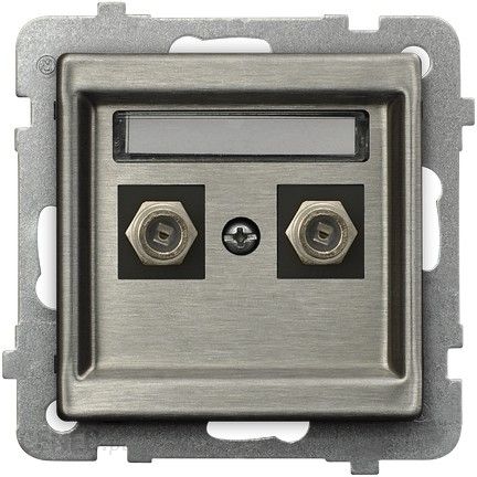 Gniazdo antenowe typu F podwójne stal inox SONATA OSPELSeria podtynkowa Sonata należy do osprzętu modułowego co oznacza że do każdego osprzętu należy dokupić osobno ramkę, według upodobania osprzęt można łączyć z ramkami jedno lub wielokrotnymi, pionowymi lub poziomymi.Seria Sonata bez wątpieńa przeznaczona jest dla najbardziej wymagających klientów, dla których najważniejsza jest jakość wykonania oraz styl. Seria posiada bogatą paletę kolorów łączników i gniazd, oraz ramek wielokolorowych wykonanych z tworzywa sztucznego a ponad to w serii dostępny jest także osprzęt wykonany z metalu. Wyroby serii Sonata przeznaczone są do montażu podtynkowego w puszkach o60 mm. W skład serii wchodzi taki osprzęt jak łączniki, gniazda wtyczkowe, gniazda teleinformatyczne, gniazda abonenckie, gniazda głośnikowe, ściemniacze, łączniki hotelowe, regulatory temperatury, czujniki ruchu oraz łączniki i gniazda posiadające stopień szczelności IP-44.UWAGA: Elementy z serii Sonata nie przylegają idealnie do ściany. Pomiędzy ścianą a ramką znajduje się ok. 2mm przerwy.Producent w Serii Sonata udostępnia kupującemu takie kolory jak:biały ecruczarny metaliksrebrny matszampański złotyczekoladowy metalikstal inoxsrebrny