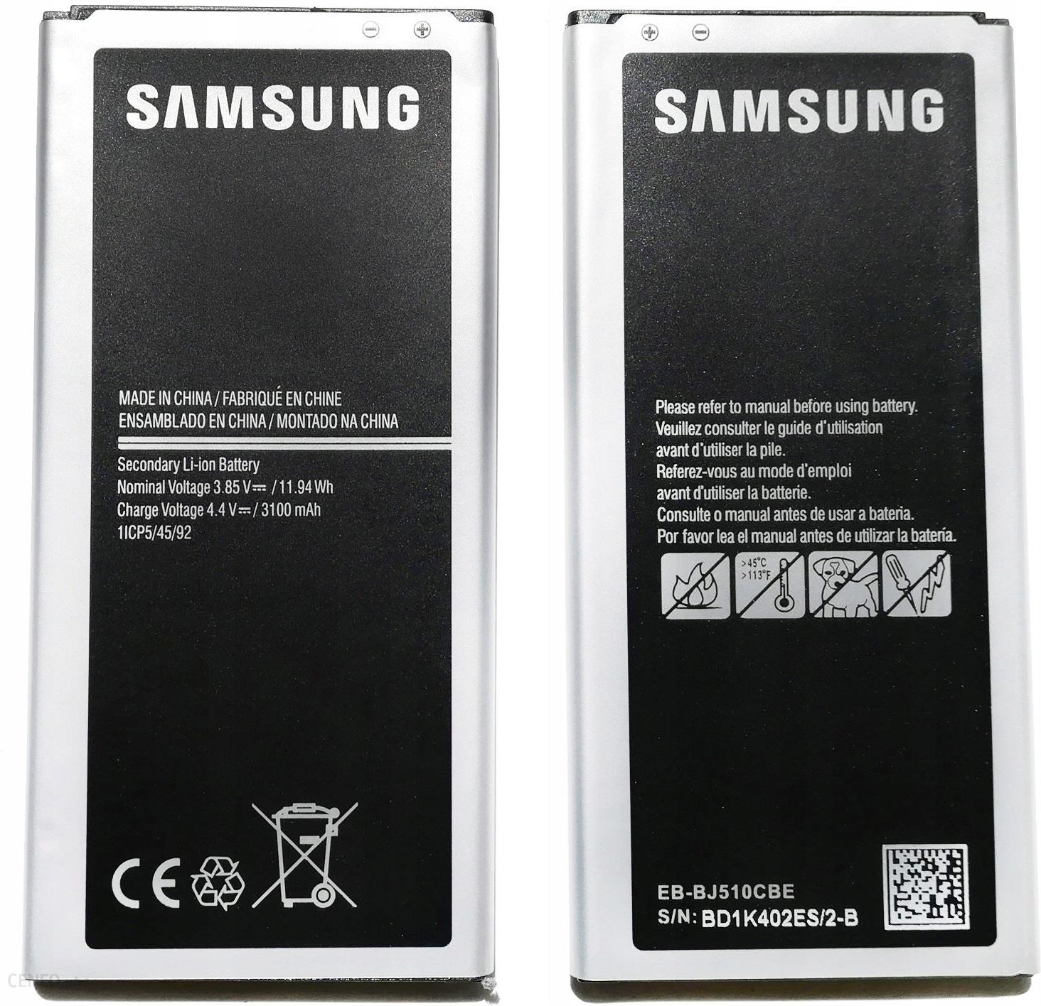 FABRYCZNIE NOWA BATERIA DO BATERIA SAMSUNG J510 GALAXY J5 2016 3100 MAHDane techniczne:Stan: Fabrycznie nowaModel: SAMSUNG J510 GALAXY J5 2016 EB-BJ510CBE / EB-BJ510CBCPojemność: 3100 mAhTyp ogniw: Litowo-jonoweJakość: ZamiennikTyp opakowania: Bulk.Fabrycznie nowa bateria gwarantująca długą i bezpieczną pracę. Wszystkie styki i taśmy są idealnie dopasowane zapewniając pewne i bezpieczne działanie. Akumulator nie posiada efektu pamięci co zapewnia długą żywotność i niezawodność pracy.Nowoczesne, litowo-jonowe ogniwa zastosowane w baterii oraz jakość wykonania spełniają rygorystyczne normy CE zapewniając pełne bezpieczeństwo oraz stuprocentową jakość akumulatora. Bateria jest w pełni przyjazna dla środowiska. O bezpieczeństwo dba szereg zabezpieczeń chroniący zarówno baterie jak i Twoje urządzenie przed przeciążeniem, przegrzaniem czy zwarciem.Dla Państwa komfortu naklejamy na baterie specjalne kody kreskowe, które pozwalają je łatwo zidentyfikować w celu wyjaśnienia ewentualnych uchybień. Dzięki temu proces reklamacji jest błyskawiczny i bardzo wygodny.Zalecana wymiana w naszym serwisie gsmok.pl/serwis.html. Oferujemy szybką i bezpieczną wymianę poprzez wykwalifikowany zespół techników z 20-letnim doświadczniem na rynku – gwarantujemy pewność sprostania nawet najtrudniejszym wyzwaniom.Nasza firma działa prężnie na rynku od niemal 20 lat oferując szeroki asortyment produktów najwyższej jakości co potwierdza zadowolenie klientów. Naszą firmę cechuje niezawodność – dzięki temu mają Państwo pewność, że oferowany towar jest wysokiego gatunku.