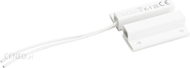 K-1 2E czujka magnetycznaCzujki magnetyczne są jednymi z podstawowych urządzeń ochrony obwodowej.Służą do zabezpieczania drzwi, okien itp., reagując na ich otwarcie.Czujka K–1 2E przeznaczona jest do montażu powierzchniowego poprzez przykręcenie np. na ramie okiennej czy futrynie.K–1 2E składa się z dwóch wodoszczelnych części:czujnika kontaktronowego (magnetycznego) oraz magnesu.Oddalenie jednej części od drugiej powoduje rozwarcie obwodu czujnika, co sygnalizowane jest jako naruszenie.Dodatkowo czujka wyposażona jest w 2 rezystory 1,1 k? połączone z kontaktronem w konfiguracji 2EOL.Umożliwiają one centrali alarmowej wykrycie sabotażu czujki poprzez obserwację zmian rezystancji na linii wejściowej.K–1 2E jest przystosowana do współpracy zarówno z dowolną centralą alarmową wyposażoną w wejścia typu NC, jak i w systemach automatyki jako element sterujący.Czujka K–1 2E dostępna jest w dwóch wersjach kolorystycznych: białej (K–1 2E) oraz brązowej (K–1 2E BR).- do montażu powierzchniowego- rezystory 1,1 kOhm w konfiguracji 2EOL/NC- kolor białyDANE TECHNICZNEMaksymalne napięcie przełączalne kontaktronu: 20 VMaksymalny prąd przełączalny: 20 mAMasa: 10 gMinimalna liczba przełączeń przy obciążeniu 20 V, 20 mA: 360 000Materiał stykowy: Ru (Ruten)Odległość zamknięcia styków kontaktronu: 18 mmOdległość otwarcia styków kontaktronu: 28 mmRezystancja parametryczna: 2 x 1100 ?